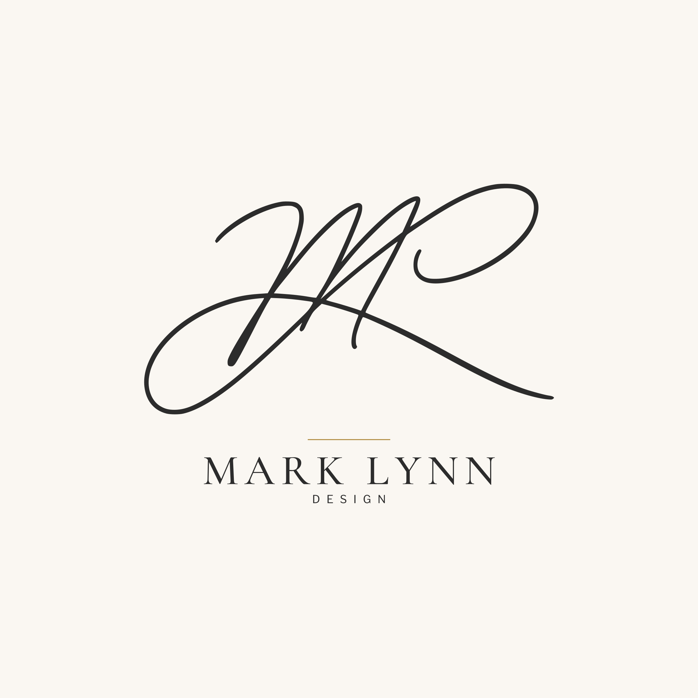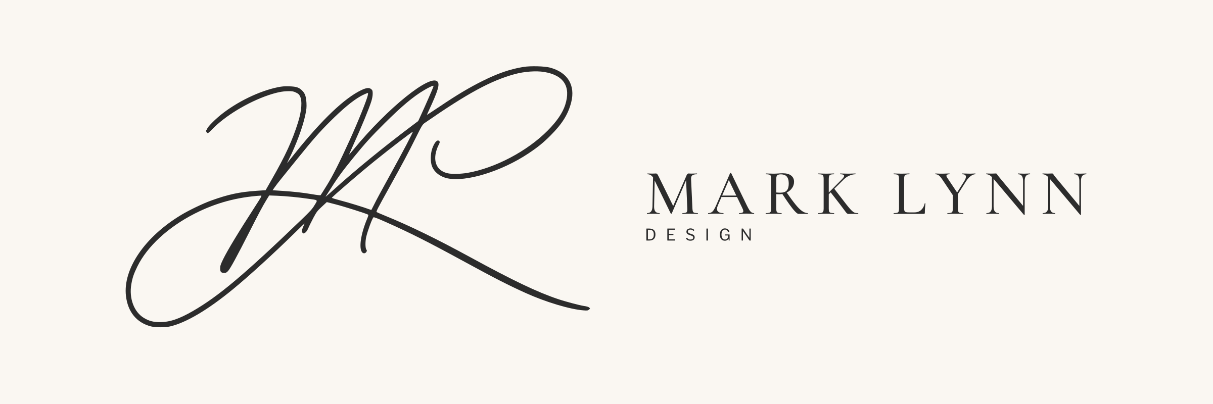 The ML cursive monogram is a vectorized trace of a handwritten signature. The wordmark — MARK LYNN in Cormorant Garamond Medium, D E S I G N in Libre Franklin Regular — is outlined to vector paths. Every shipped SVG is self-contained: no font, no image, no external reference. v2.1 tightens the signature-to-wordmark gap and thickens the signature stroke.